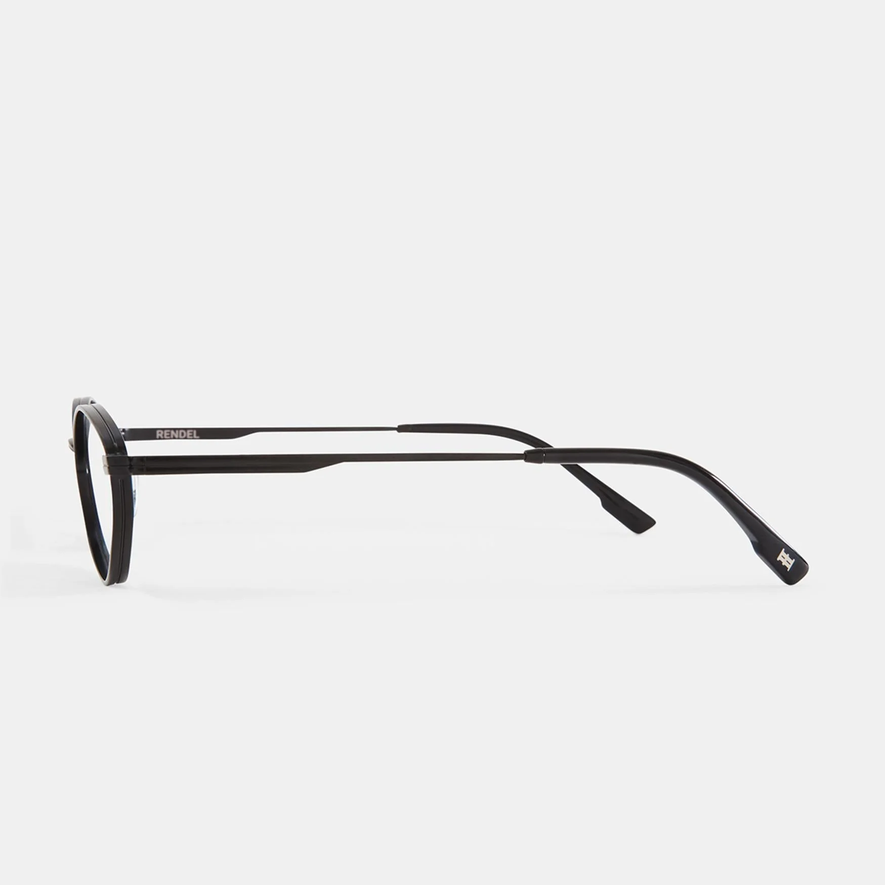 Monture métallique de forme cat-eye. Fines branches avec manchons en acétate, et déport sur la face avant du verre.